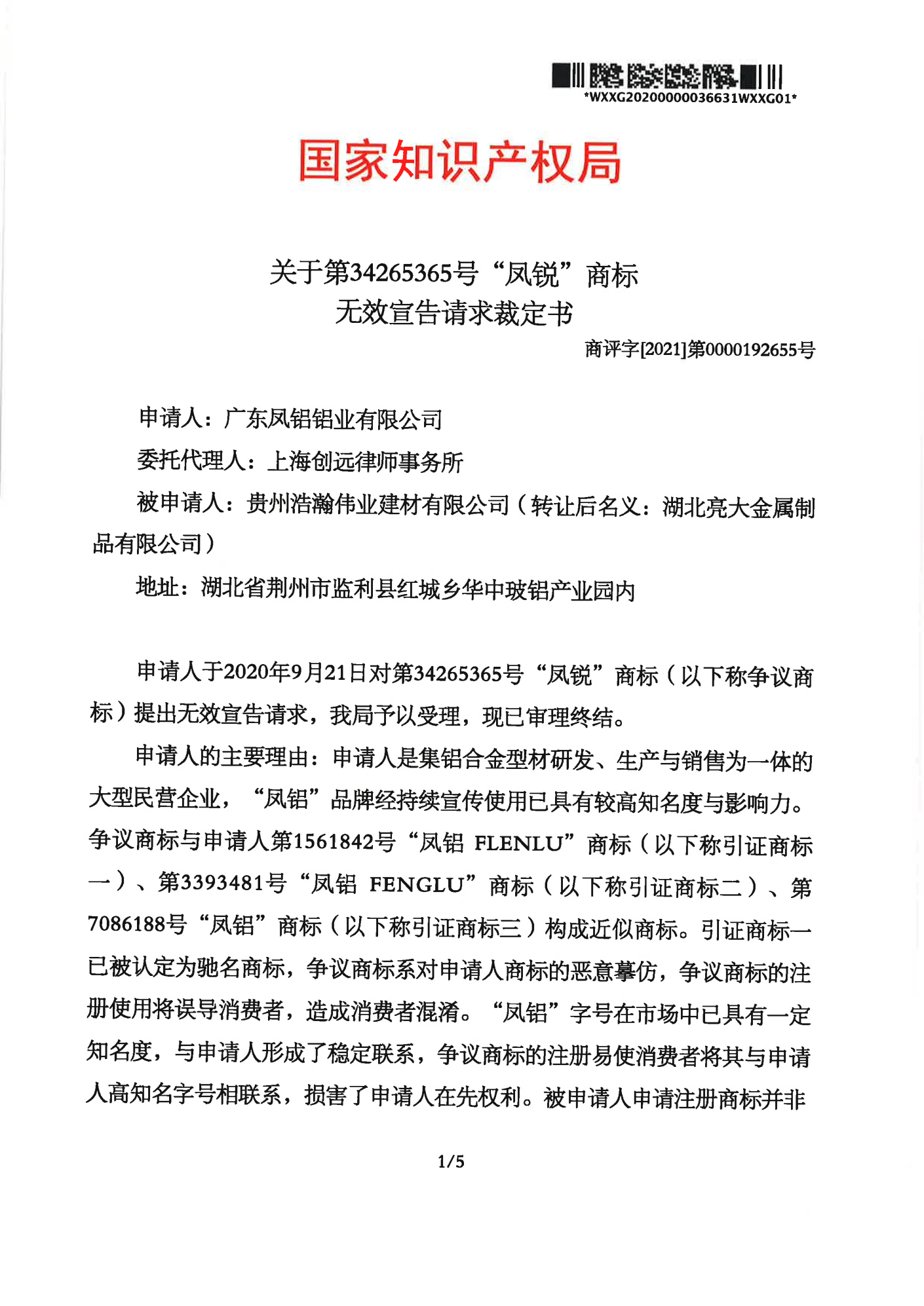 威海辉知队 | 国家知识产权局:“凤锐”商标无效