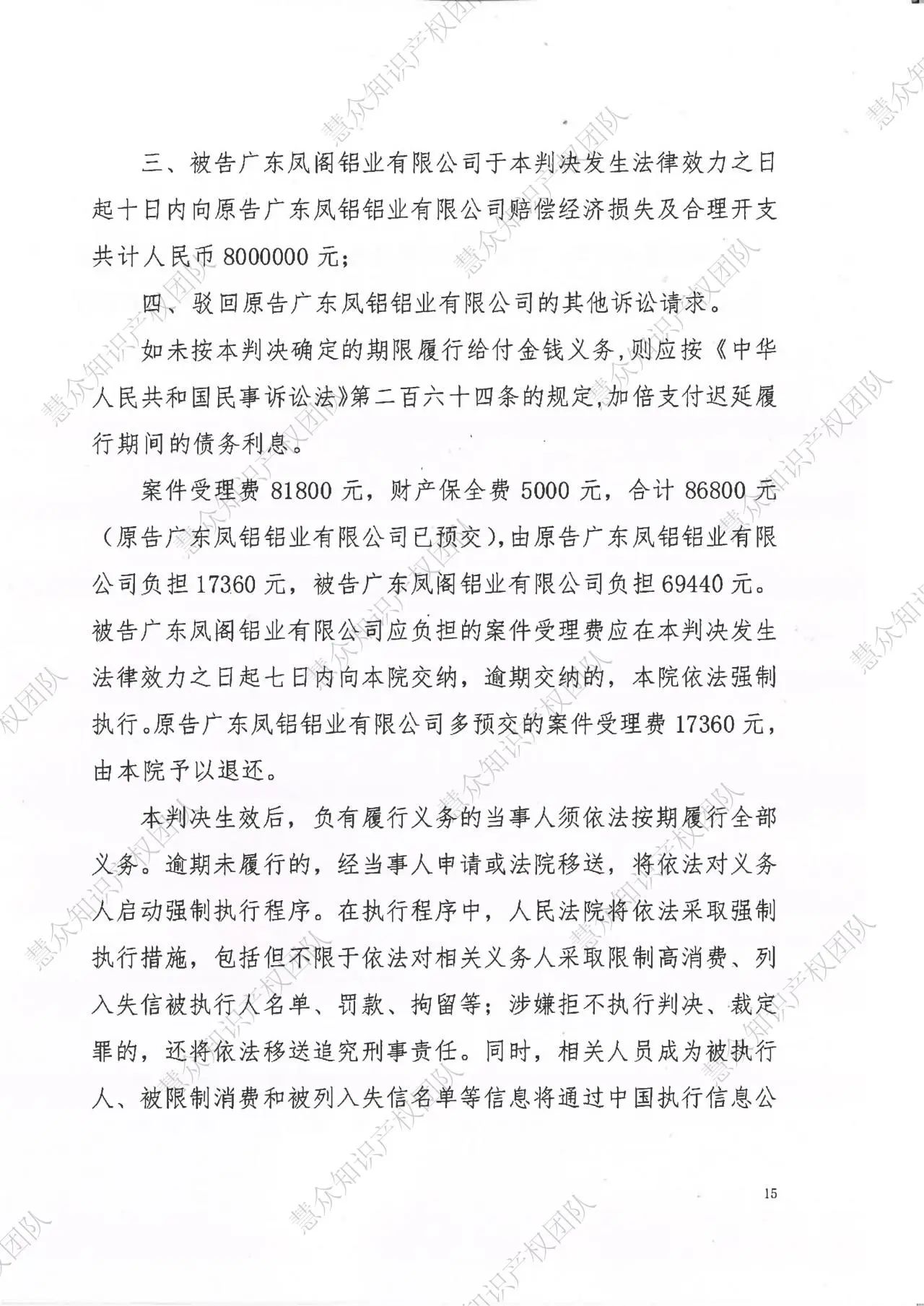 威海判赔800万!辉知队代理“凤铝”商标维权案胜诉